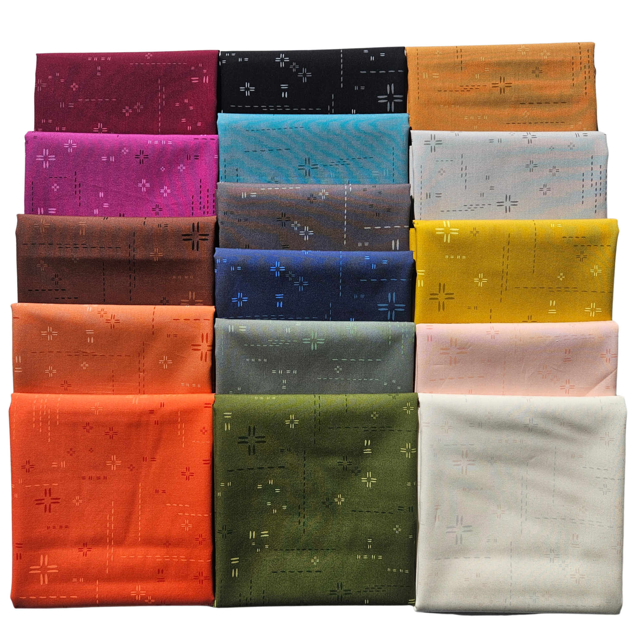 The Decostitch Elements Fat Quarter bundle includes 16 fat quarters, (18" x 21"), one of each print shown from the Decostitch Elements collection designed by Art Gallery Fabrics.